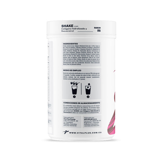 Shake con Colágeno y Resveratrol | Malteada con Proteína Aislado de Suero Leche | Resveratrol | Omega 3 | Colágeno | Sabor Uva