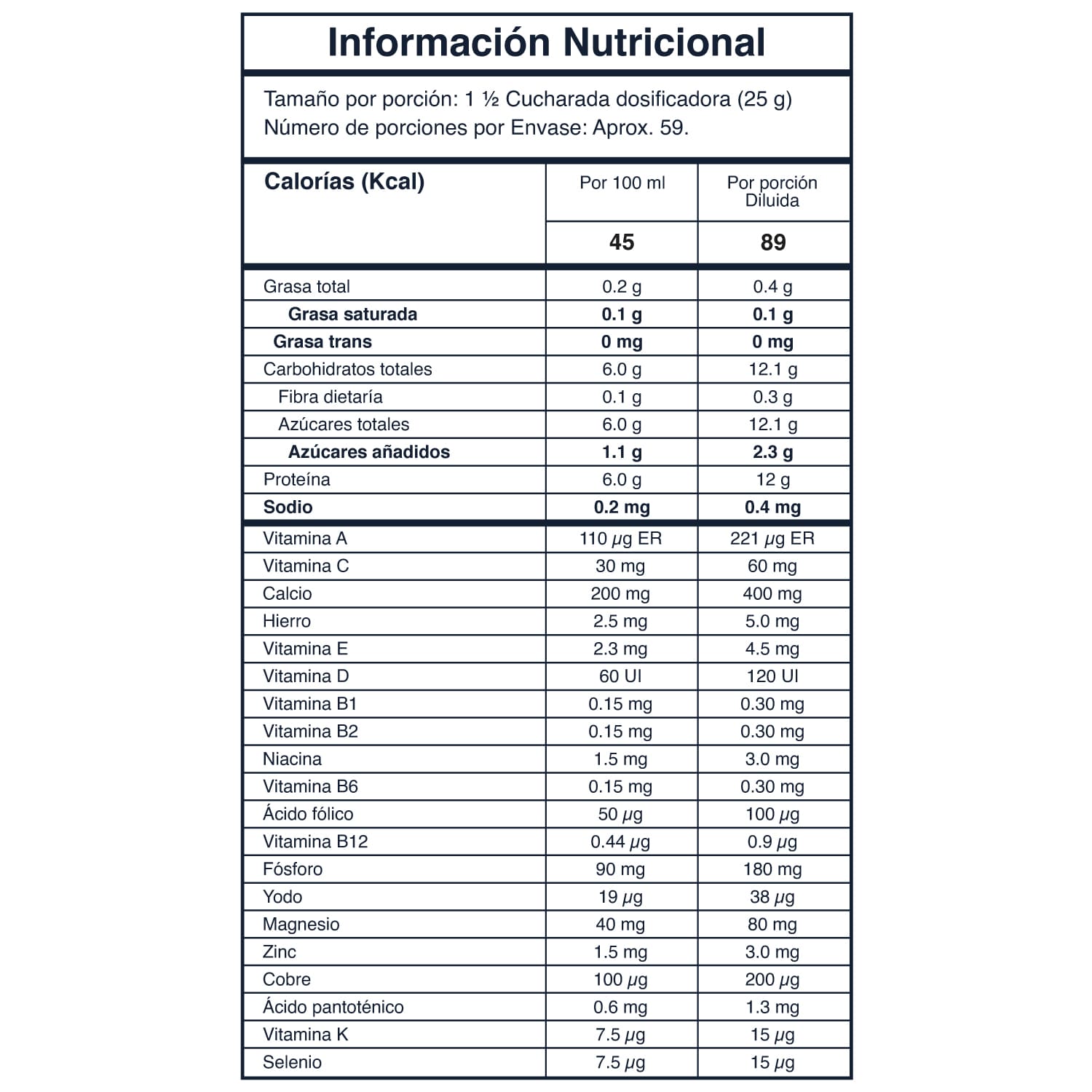 1️⃣ Mezcla la porción recomendada en agua o leche.
